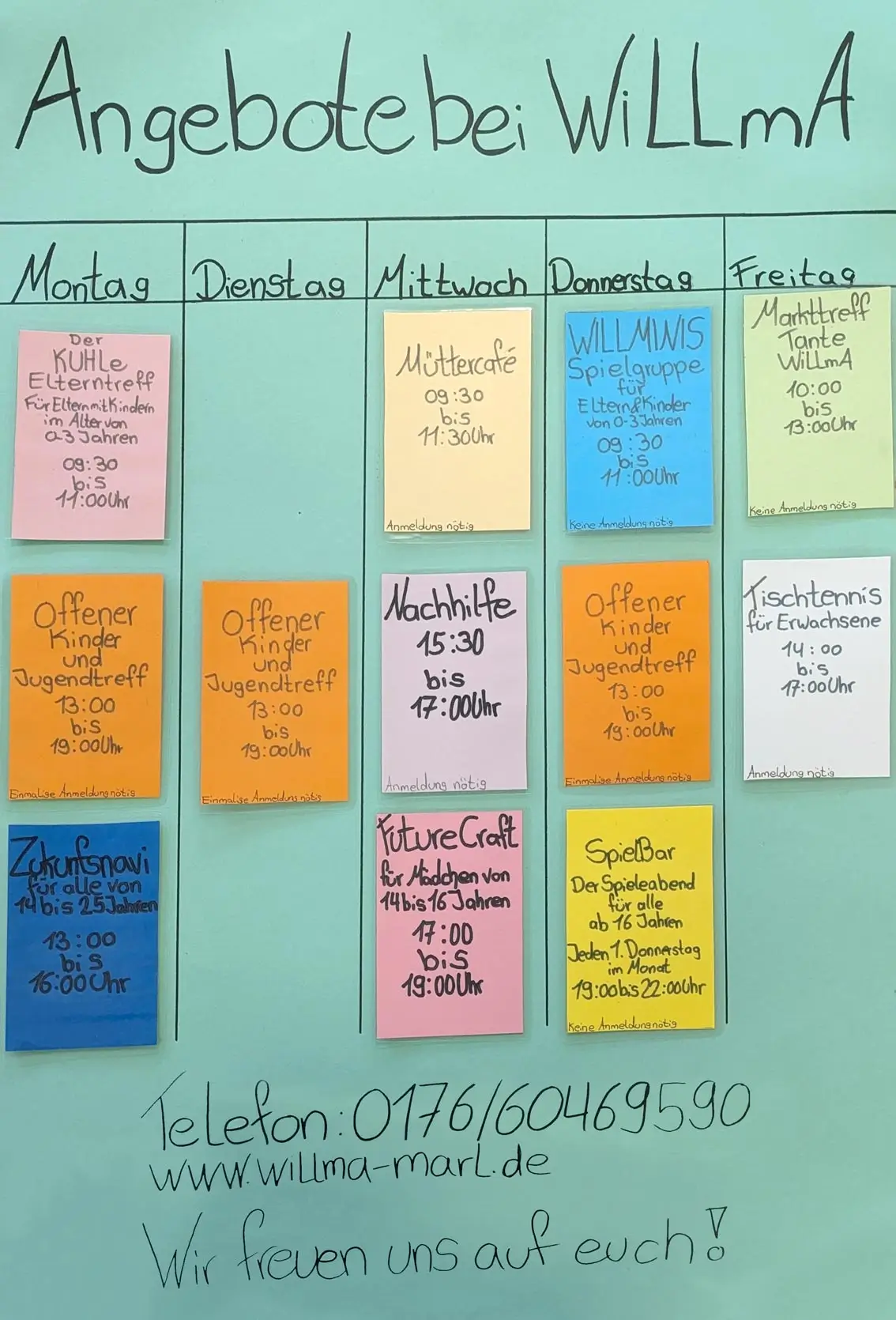 WiLLmA öffnet täglich seine Türen für über 35 Kinder und Jugendliche, die gemeinsam lernen, spielen und kreativ sein können. Das Angebot reicht von Hausaufgabenhilfe über kreative und sportliche Aktivitäten bis hin zu gemeinsamen Mahlzeiten, die Zusammenhalt und Gemeinschaft fördern. Zusätzlich gibt es spezielle Angebote wie den Markttreff „Tante WiLLmA“ – ein Café auf Spendenbasis, das als Treffpunkt für den Austausch zwischen den Generationen im Stadtteil dient.